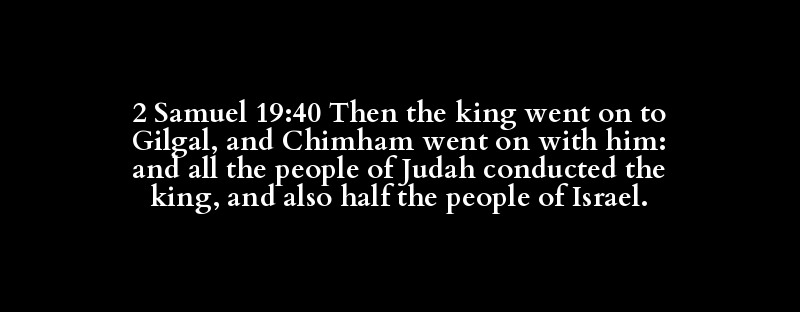 2 Samuel 19:40 Then the king went on to Gilgal, and Chimham went on with him: and all the people of Judah conducted the king, and also half the people of Israel.