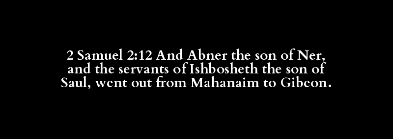 2 Samuel 2:12 And Abner the son of Ner, and the servants of Ishbosheth the son of Saul, went out from Mahanaim to Gibeon.