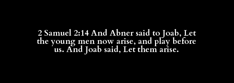 2 Samuel 2:14 And Abner said to Joab, Let the young men now arise, and play before us. And Joab said, Let them arise.