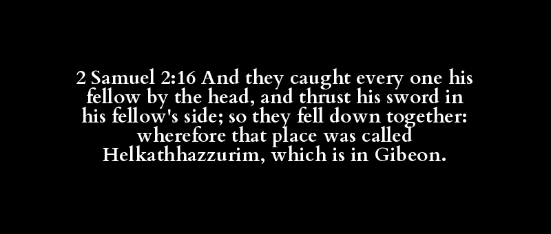 2 Samuel 2:16 And they caught every one his fellow by the head, and thrust his sword in his fellow's side; so they fell down together: wherefore that place was called Helkathhazzurim, which is in Gibeon.