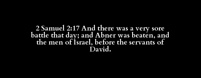 2 Samuel 2:17 And there was a very sore battle that day; and Abner was beaten, and the men of Israel, before the servants of David.