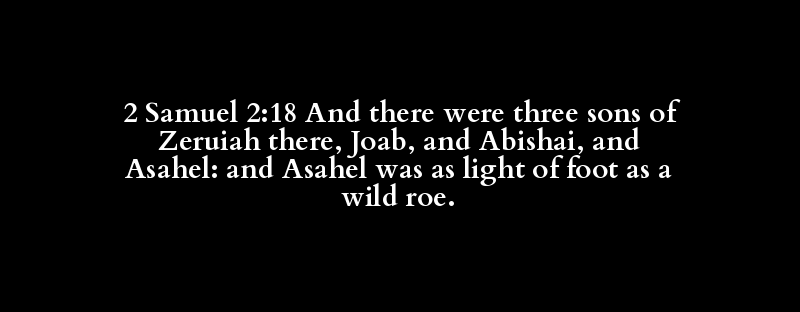 2 Samuel 2:18 And there were three sons of Zeruiah there, Joab, and Abishai, and Asahel: and Asahel was as light of foot as a wild roe.