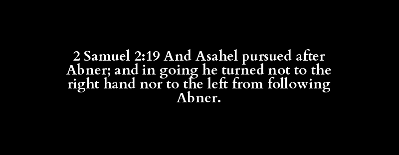 2 Samuel 2:19 And Asahel pursued after Abner; and in going he turned not to the right hand nor to the left from following Abner.
