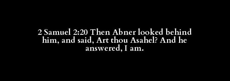 2 Samuel 2:20 Then Abner looked behind him, and said, Art thou Asahel? And he answered, I am.