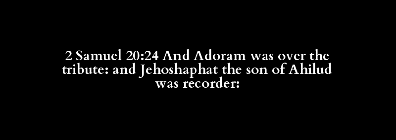 2 Samuel 20:24 And Adoram was over the tribute: and Jehoshaphat the son of Ahilud was recorder:
