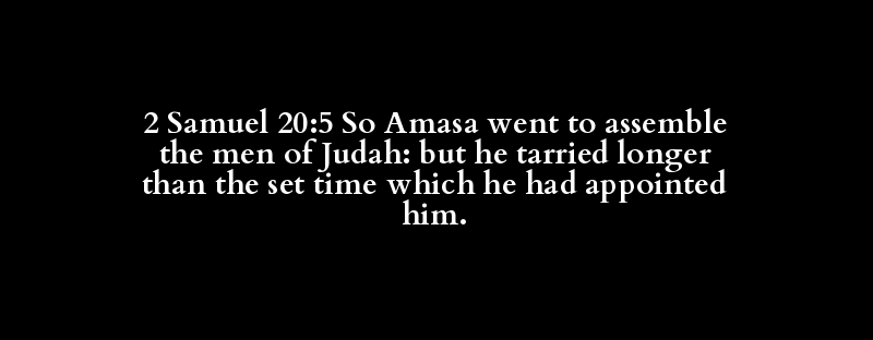 2 Samuel 20:5 So Amasa went to assemble the men of Judah: but he tarried longer than the set time which he had appointed him.