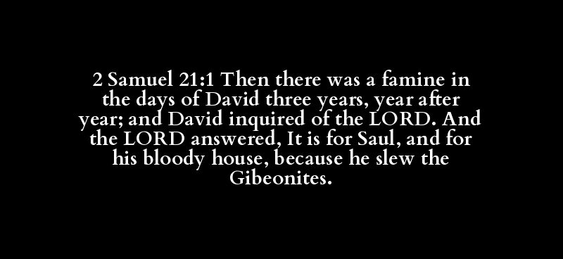 2 Samuel 21:1 Then there was a famine in the days of David three years, year after year; and David inquired of the LORD. And the LORD answered, It is for Saul, and for his bloody house, because he slew the Gibeonites.