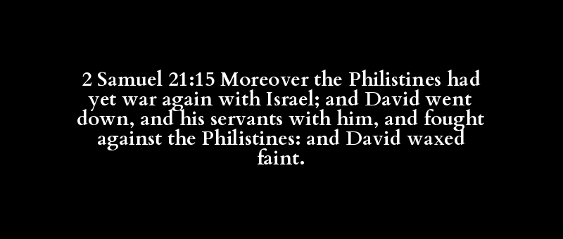 2 Samuel 21:15 Moreover the Philistines had yet war again with Israel; and David went down, and his servants with him, and fought against the Philistines: and David waxed faint.