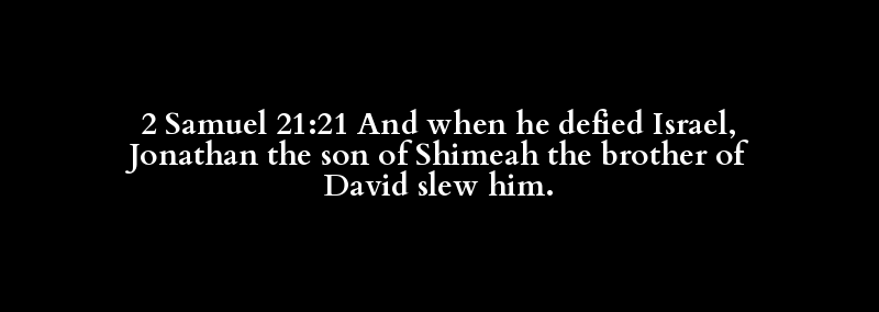 2 Samuel 21:21 And when he defied Israel, Jonathan the son of Shimeah the brother of David slew him.