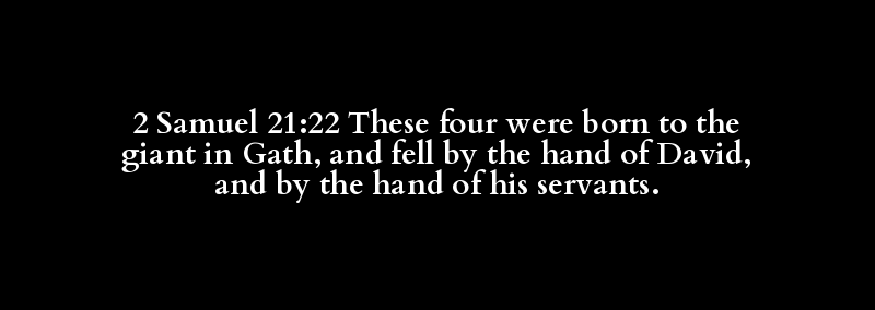 2 Samuel 21:22 These four were born to the giant in Gath, and fell by the hand of David, and by the hand of his servants.