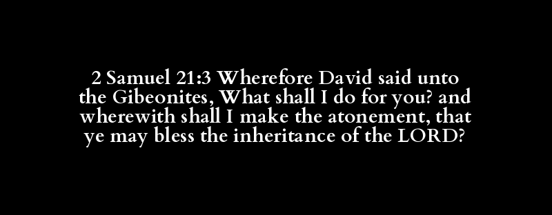 2 Samuel 21:3 Wherefore David said unto the Gibeonites, What shall I do for you? and wherewith shall I make the atonement, that ye may bless the inheritance of the LORD?