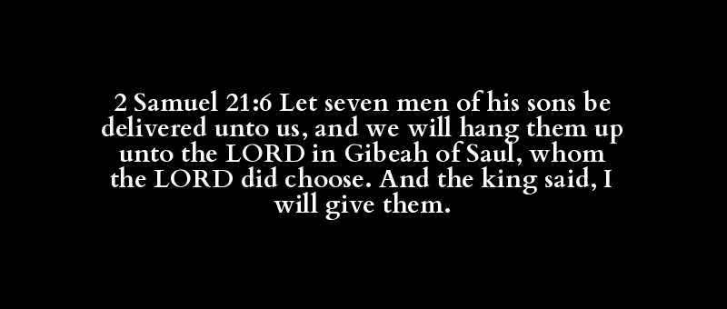 2 Samuel 21:6 Let seven men of his sons be delivered unto us, and we will hang them up unto the LORD in Gibeah of Saul, whom the LORD did choose. And the king said, I will give them.