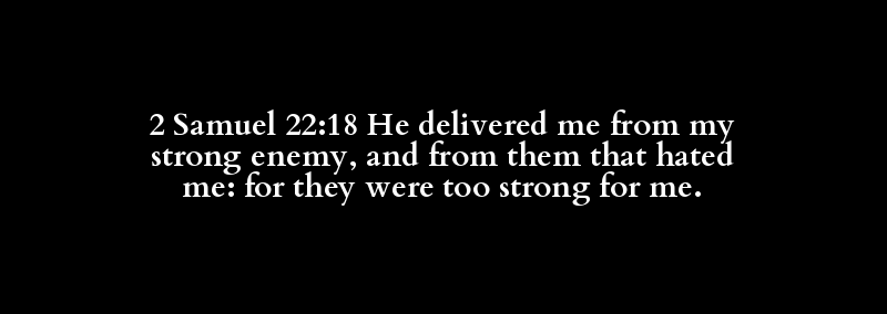 2 Samuel 22:18 He delivered me from my strong enemy, and from them that hated me: for they were too strong for me.