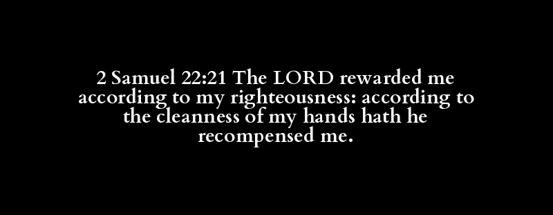 2 Samuel 22:21 The LORD rewarded me according to my righteousness: according to the cleanness of my hands hath he recompensed me.