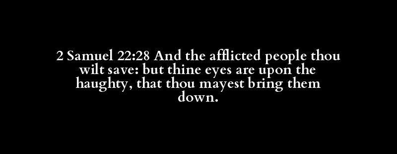 2 Samuel 22:28 And the afflicted people thou wilt save: but thine eyes are upon the haughty, that thou mayest bring them down.