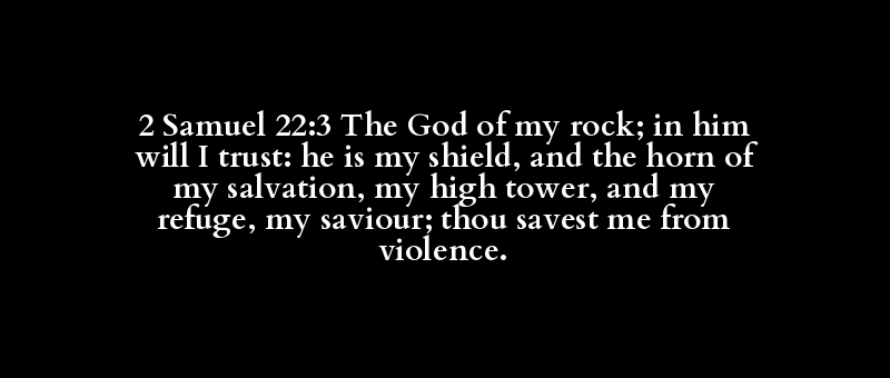 2 Samuel 22:3 The God of my rock; in him will I trust: he is my shield, and the horn of my salvation, my high tower, and my refuge, my saviour; thou savest me from violence.