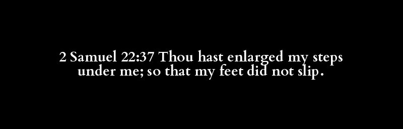 2 Samuel 22:37 Thou hast enlarged my steps under me; so that my feet did not slip.