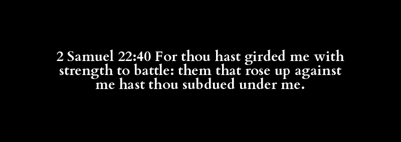 2 Samuel 22:40 For thou hast girded me with strength to battle: them that rose up against me hast thou subdued under me.