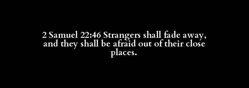 2 Samuel 22:46 Strangers shall fade away, and they shall be afraid out of their close places.