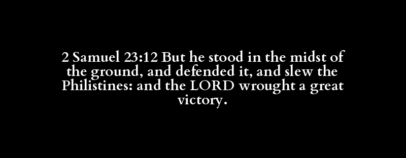 2 Samuel 23:12 But he stood in the midst of the ground, and defended it, and slew the Philistines: and the LORD wrought a great victory.