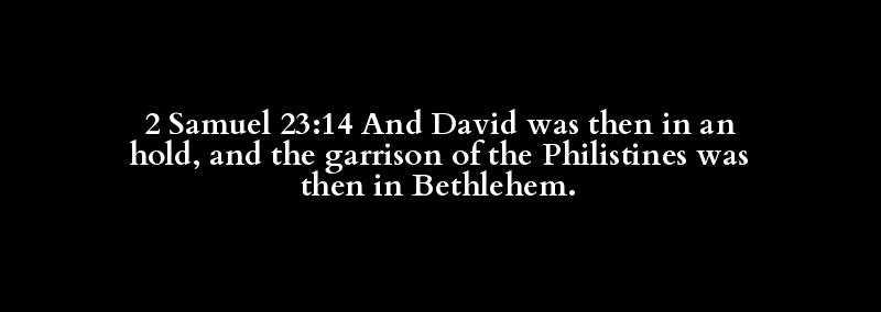 2 Samuel 23:14 And David was then in an hold, and the garrison of the Philistines was then in Bethlehem.
