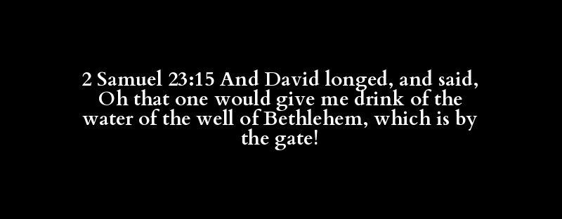 2 Samuel 23:15 And David longed, and said, Oh that one would give me drink of the water of the well of Bethlehem, which is by the gate!