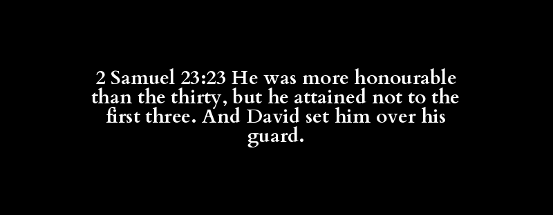 2 Samuel 23:23 He was more honourable than the thirty, but he attained not to the first three. And David set him over his guard.