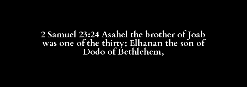 2 Samuel 23:24 Asahel the brother of Joab was one of the thirty; Elhanan the son of Dodo of Bethlehem,