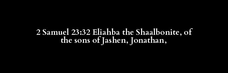 2 Samuel 23:32 Eliahba the Shaalbonite, of the sons of Jashen, Jonathan,