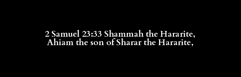 2 Samuel 23:33 Shammah the Hararite, Ahiam the son of Sharar the Hararite,