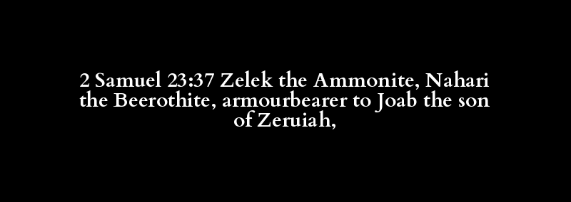 2 Samuel 23:37 Zelek the Ammonite, Nahari the Beerothite, armourbearer to Joab the son of Zeruiah,