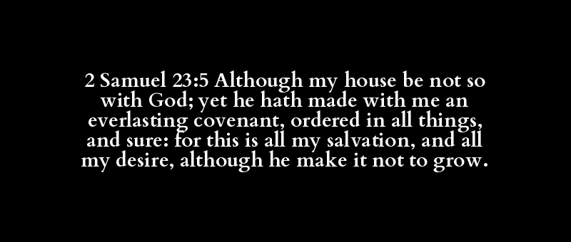 2 Samuel 23:5 Although my house be not so with God; yet he hath made with me an everlasting covenant, ordered in all things, and sure: for this is all my salvation, and all my desire, although he make it not to grow.