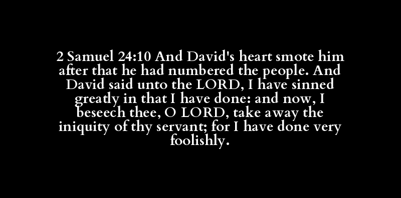 2 Samuel 24:10 And David's heart smote him after that he had numbered the people. And David said unto the LORD, I have sinned greatly in that I have done: and now, I beseech thee, O LORD, take away the iniquity of thy servant; for I have done very foolishly.
