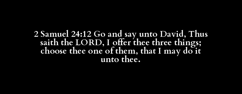 2 Samuel 24:12 Go and say unto David, Thus saith the LORD, I offer thee three things; choose thee one of them, that I may do it unto thee.