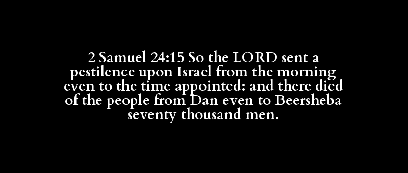 2 Samuel 24:15 So the LORD sent a pestilence upon Israel from the morning even to the time appointed: and there died of the people from Dan even to Beersheba seventy thousand men.