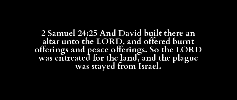 2 Samuel 24:25 And David built there an altar unto the LORD, and offered burnt offerings and peace offerings. So the LORD was entreated for the land, and the plague was stayed from Israel.