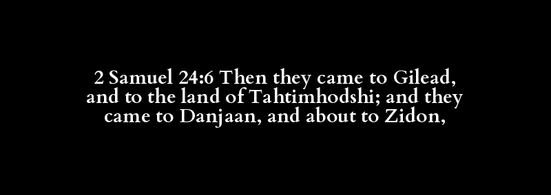 2 Samuel 24:6 Then they came to Gilead, and to the land of Tahtimhodshi; and they came to Danjaan, and about to Zidon,
