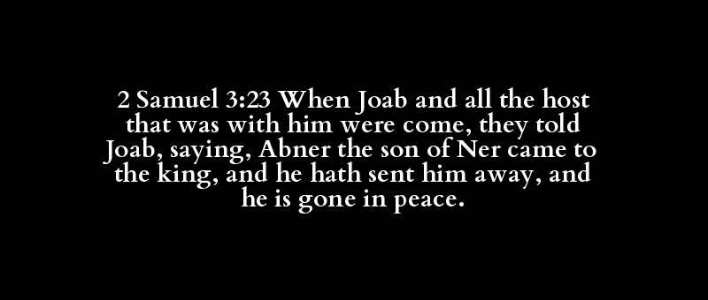 2 Samuel 3:23 When Joab and all the host that was with him were come, they told Joab, saying, Abner the son of Ner came to the king, and he hath sent him away, and he is gone in peace.
