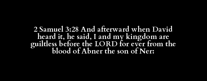 2 Samuel 3:28 And afterward when David heard it, he said, I and my kingdom are guiltless before the LORD for ever from the blood of Abner the son of Ner: