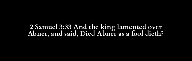 2 Samuel 3:33 And the king lamented over Abner, and said, Died Abner as a fool dieth?