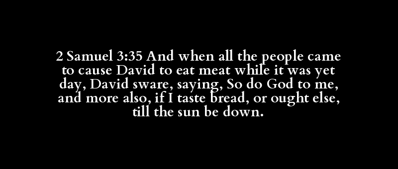 2 Samuel 3:35 And when all the people came to cause David to eat meat while it was yet day, David sware, saying, So do God to me, and more also, if I taste bread, or ought else, till the sun be down.