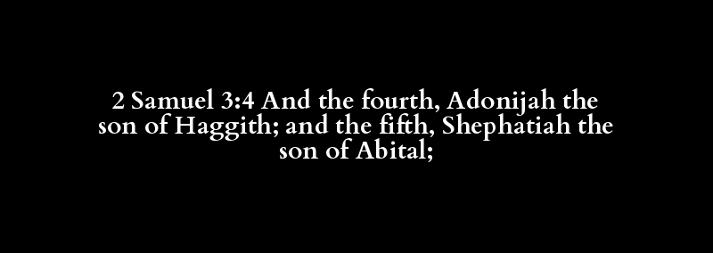 2 Samuel 3:4 And the fourth, Adonijah the son of Haggith; and the fifth, Shephatiah the son of Abital;