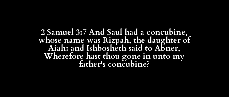 2 Samuel 3:7 And Saul had a concubine, whose name was Rizpah, the daughter of Aiah: and Ishbosheth said to Abner, Wherefore hast thou gone in unto my father's concubine?