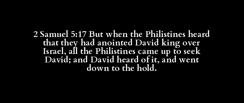 2 Samuel 5:17 But when the Philistines heard that they had anointed David king over Israel, all the Philistines came up to seek David; and David heard of it, and went down to the hold.
