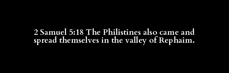 2 Samuel 5:18 The Philistines also came and spread themselves in the valley of Rephaim.