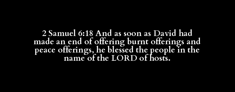 2 Samuel 6:18 And as soon as David had made an end of offering burnt offerings and peace offerings, he blessed the people in the name of the LORD of hosts.