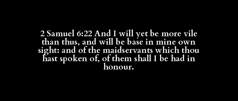 2 Samuel 6:22 And I will yet be more vile than thus, and will be base in mine own sight: and of the maidservants which thou hast spoken of, of them shall I be had in honour.