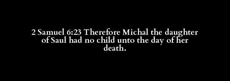 2 Samuel 6:23 Therefore Michal the daughter of Saul had no child unto the day of her death.