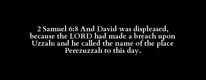 2 Samuel 6:8 And David was displeased, because the LORD had made a breach upon Uzzah: and he called the name of the place Perezuzzah to this day.
