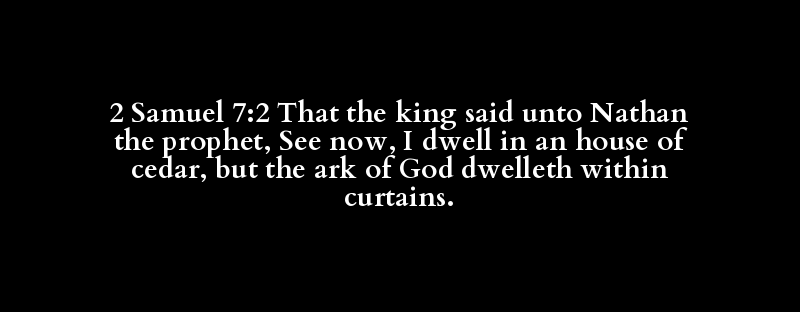 2 Samuel 7:2 That the king said unto Nathan the prophet, See now, I dwell in an house of cedar, but the ark of God dwelleth within curtains.